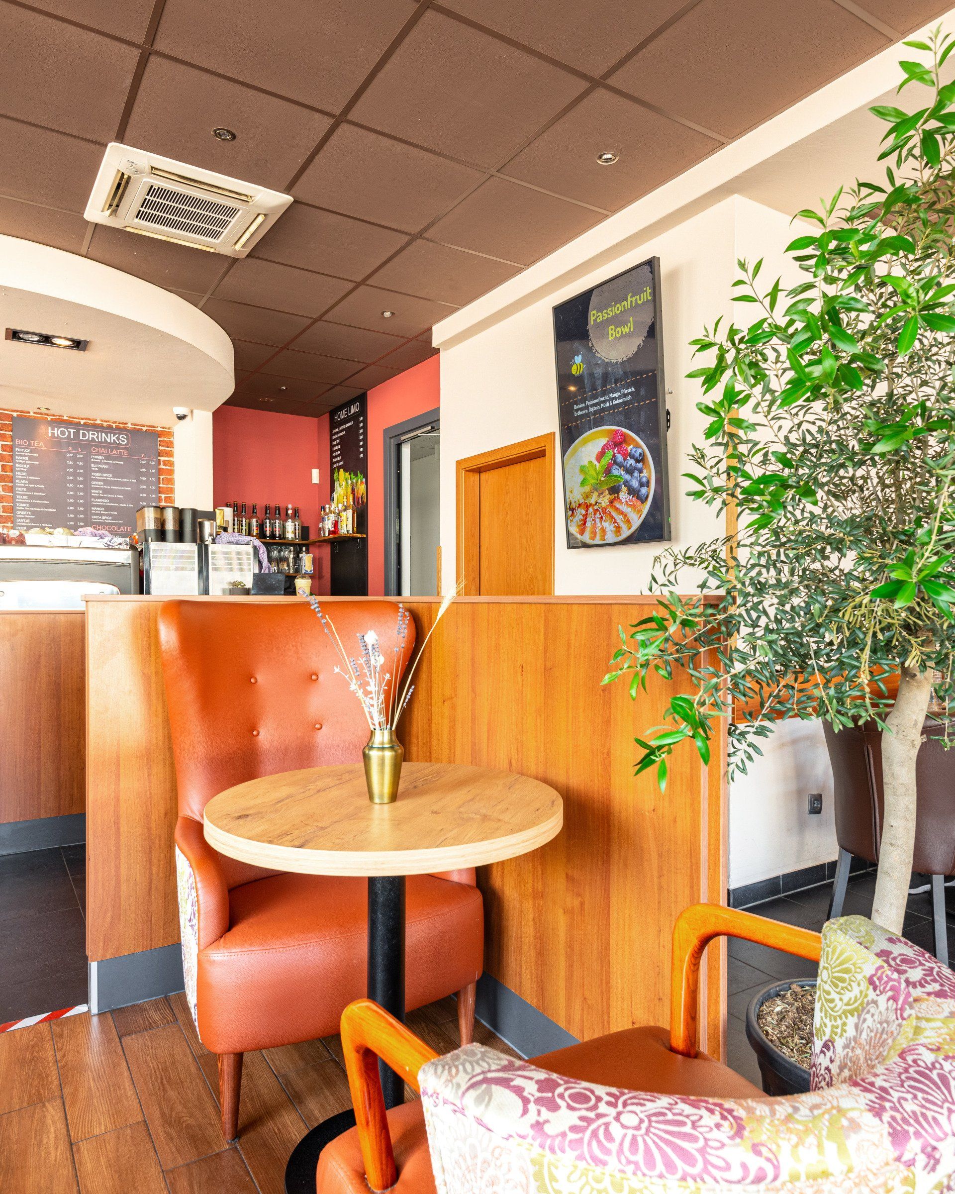 Auf knapp 80m2 mit 40 Sitzplätzen und Außenterrasse mit ca. 120 Sitzplätzen, erwartet dich ein gemütlicher Ort zur Entspannung, ausgestattet mit modernen Möbeln welche zum Verweilen und Genießen einladen.