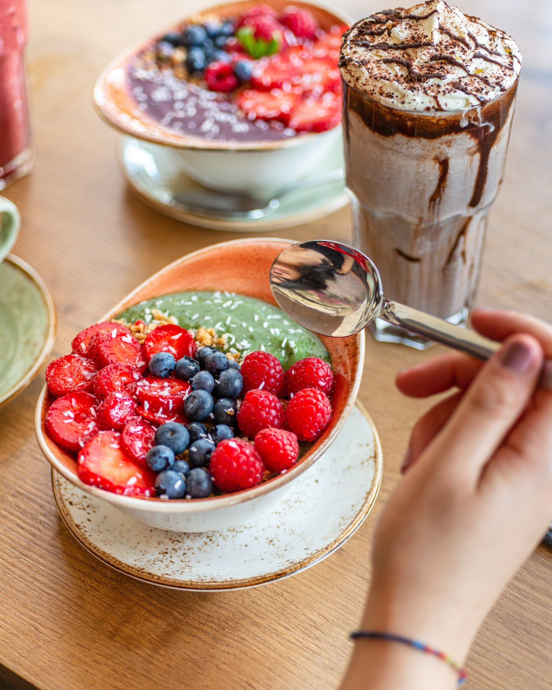 Wir bieten über unsere Kaffeerösterei, Bio-zertifizierte und fair gehandelte Kaffeesorten an. Lass dich überraschen und verzaubern, von unserem frisch gemahlenem Kaffee, leckerer Muffin und Kuchen Vielfalt. Sowie hausgemachte Bowls, belegte Bagels und gesunde, frische Smoothies.